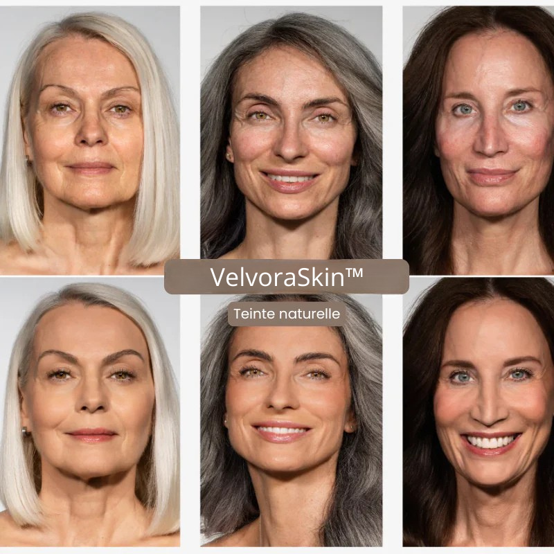 “Avec l’âge, ma peau avait tendance à marquer. VelvoraSkin™ floute vraiment les imperfections et donne un rendu beaucoup plus frais. J’adore l’effet seconde peau, on dirait que je n’ai rien mis.”